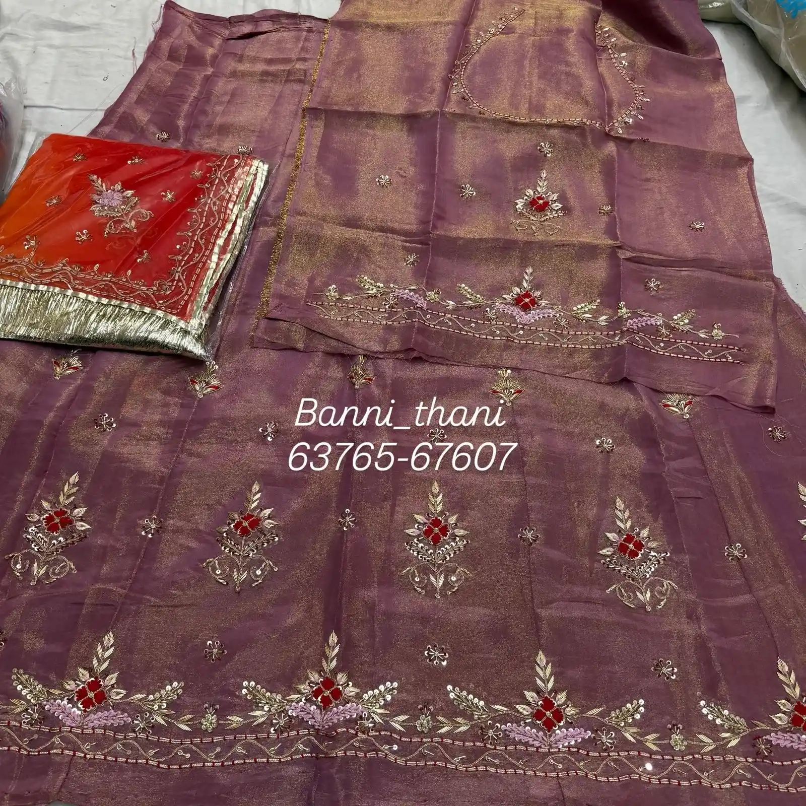 Tissue fabric Pure thakurji odhni Zardosi dori handwork Poshak